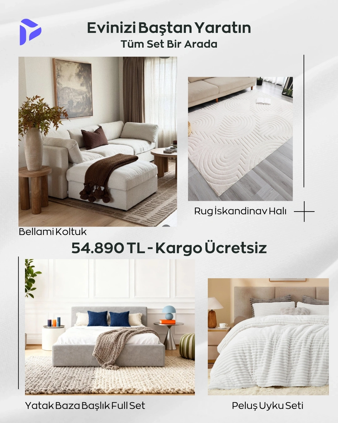 Bellami Premium Ev Paketi – Koltuk, Yatak Odası & Halı Seti