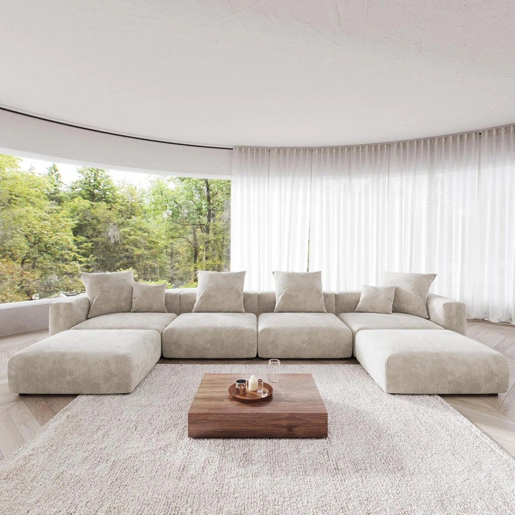 Nova U Şekilli Modüler Koltuk, bir arada olmayı seven yaşam alanları için tasarlanmış geniş, dengeli ve fonksiyonel bir oturma çözümüdür. U formundaki yerleşimi sayesinde hem estetik bir bütünlük oluşturur hem de kalabalık oturumlar için ideal bir düzen sağlar.